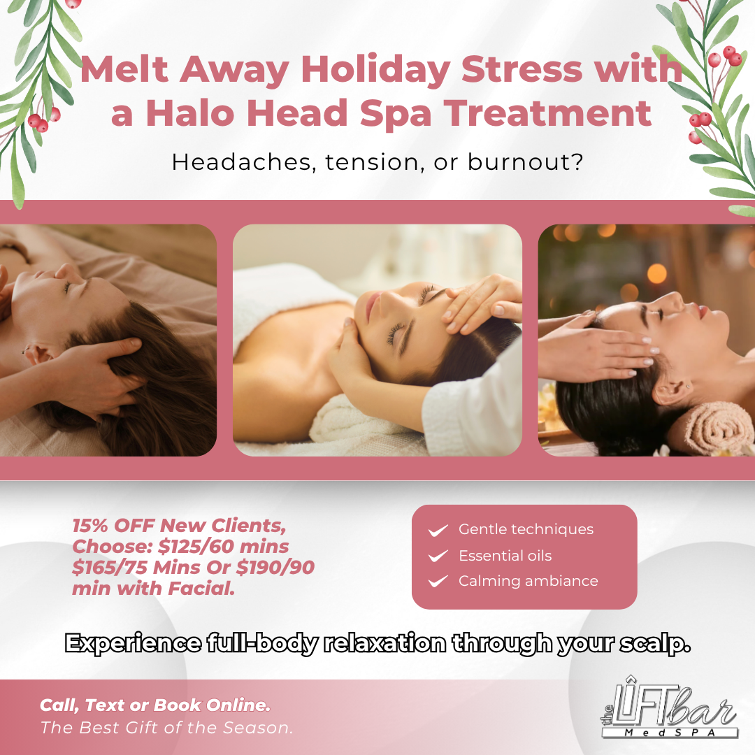 Discover The Lift Bar Medspa’s Halo Head Spa Experience — a luxurious escape designed to restore scalp health, promote hair growth, and calm the mind. Each treatment combines professional scalp therapy, aromatherapy, and advanced relaxation techniques to deliver total body renewal and visible results.